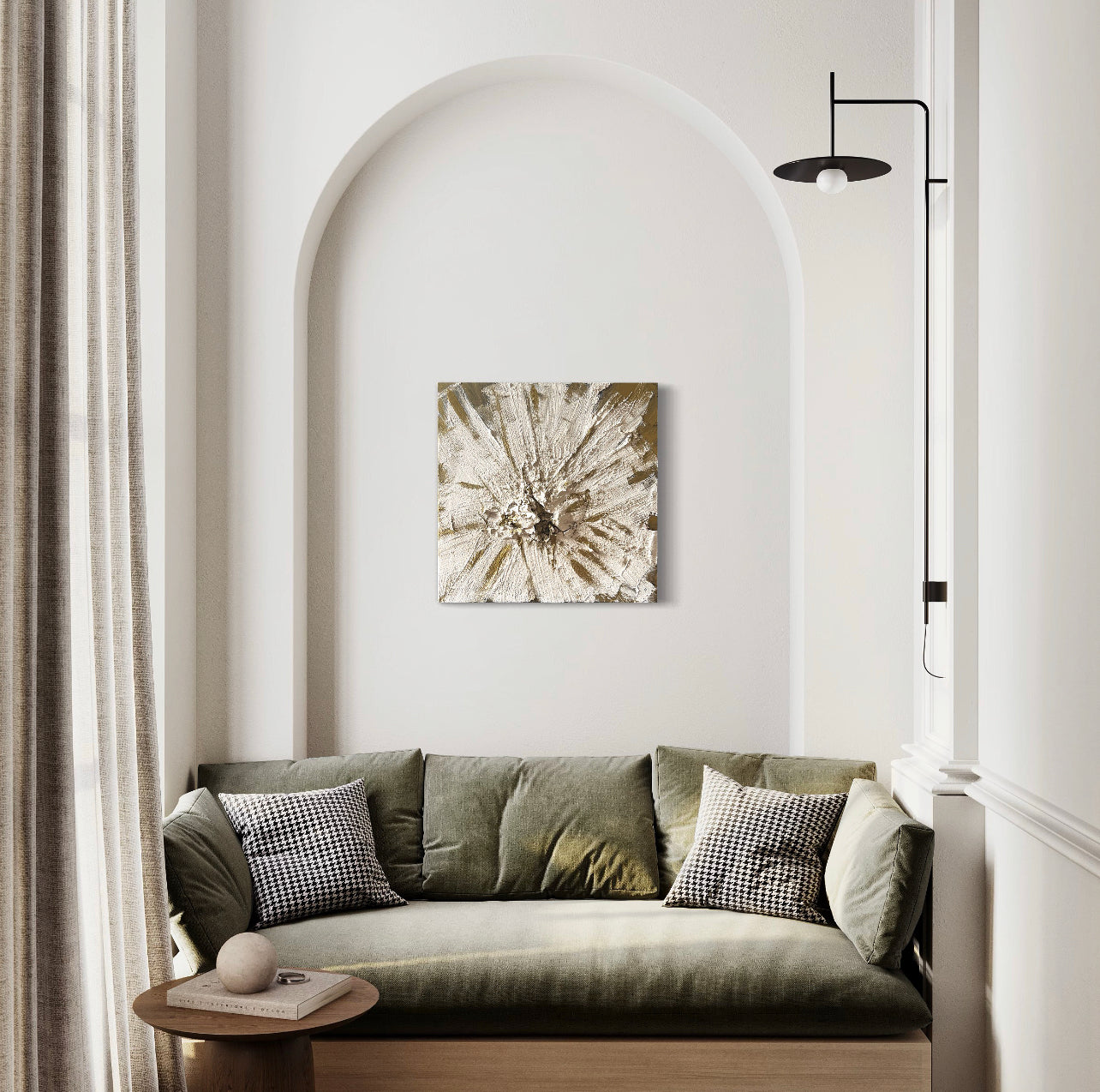 Un éclat brut dans la roche, comme une étoile qui explose en plein ciel, un souvenir figé dans la matière, éclaboussant l’espace de lumière et d’or.